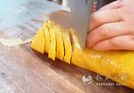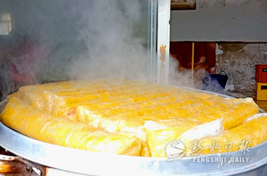 中國彭水網(wǎng)(全媒體記者 張茂玉 楊 靜 文/圖)三香,又叫包圓或卷子,是將五花肉、紅薯淀粉、土雞蛋等食材按一定比例蒸制而成。三香口感香嫩潤滑、美味可口,營養(yǎng)搭配合適,又因其易于保存、方便攜帶,成為了彭水人外出求學(xué)或打工時(shí)必帶的家鄉(xiāng)美食。