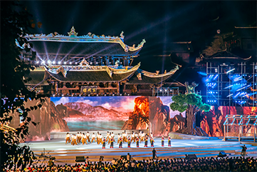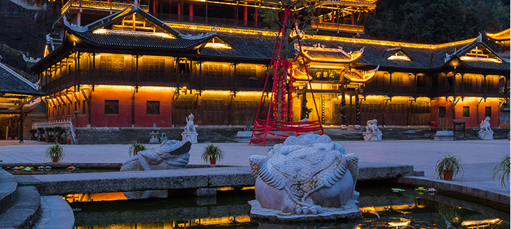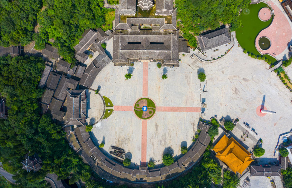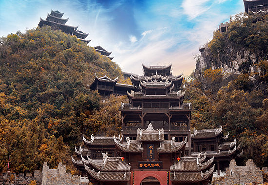 蚩尤九黎城位于重慶市彭水自治縣老縣城與靛水新城的中間連接帶,處烏江黃金水道南面并與渝湘高速下線互通。項目規(guī)劃占地面積約1300畝,分為核心景區(qū)和配套服務(wù)區(qū)。建筑風貌為統(tǒng)一的苗族傳統(tǒng)建筑風格,全力彰顯“旅游是文化的載體、文化是旅游的靈魂”,是彭水民族、生態(tài)、文化三大特色的集中展示地,產(chǎn)城景融合發(fā)展樣板區(qū),著力打造全國知名的民族生態(tài)文化旅游目的地。其中,蚩尤九黎城景城片區(qū)是由國家級非遺傳承人,曾經(jīng)被朱镕基總理稱為“湘西鬼才”的李宏進策劃、設(shè)計。