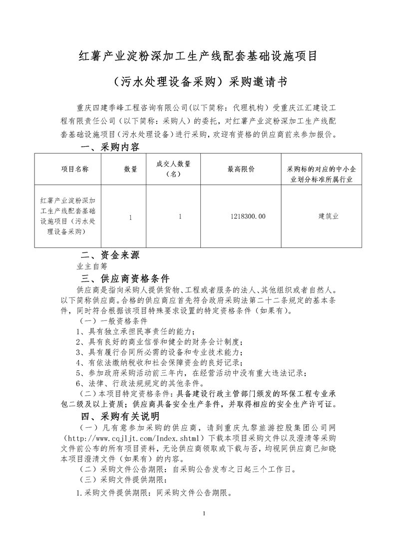 紅薯產(chǎn)業(yè)淀粉深加工生產(chǎn)線配套基礎(chǔ)設(shè)施項目 (污水處理設(shè)備采購)采購邀請書